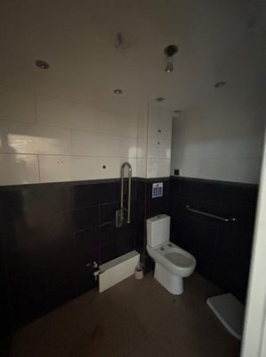 The property frontage comprises two glass double door and large aluminum framed windows with signage above. It also benefits from internal security shutters. Internally the property is an undivided open shop floor with a WC in the center. The rear of the property is an open space with storage and a second WC. |